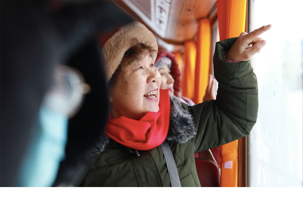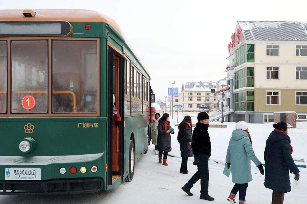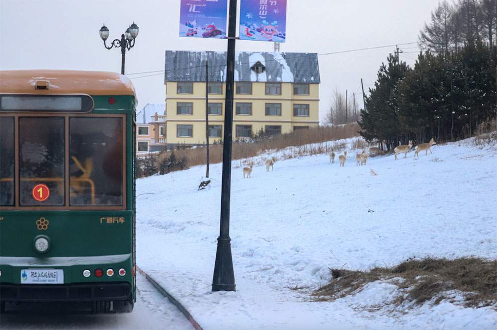 刚一坐上特色观光车,来自呼和浩特市 8 岁的张亦扬小朋友就按捺不住激动的心情,高兴地呼喊着“我要去见黄羊喽!”窗外银装素裹的童话世界,让游客们惊奇不已,张亦扬更是瞪大了双眼,期待第一时间“捕捉”到黄羊呆萌可爱的身影。