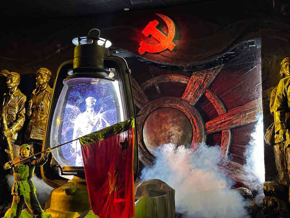 据红飘带讲解员胡俊夷进一步介绍,在整场演绎环节中集合了 AI 虚拟交互、全息影像、全维度机械运动、虚拟现实技术、三维声场等等前沿的科技手段,数字化全景再现长征之路。