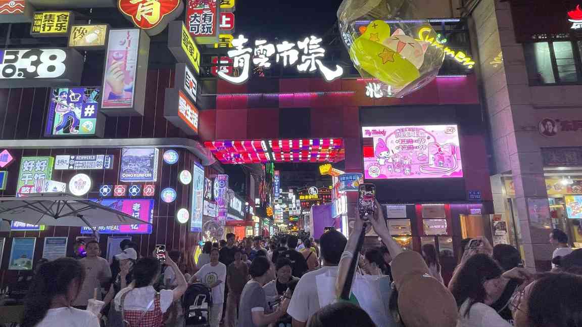 11 月 30 日晚上 9 时许,青云市集仍热闹非凡。 澎湃新闻记者 王珏玮 图