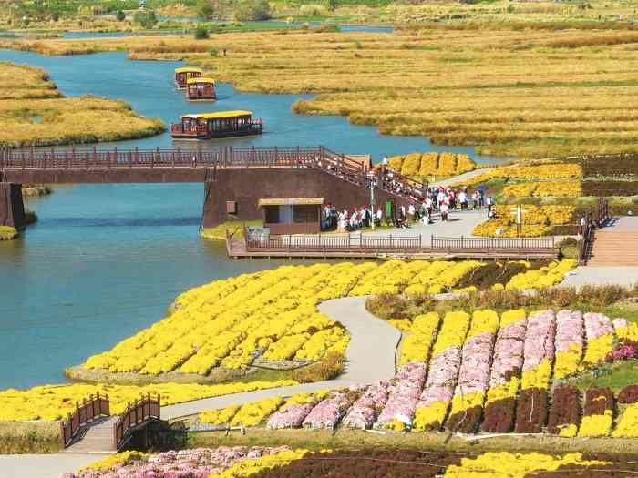 近期,江苏省兴化市秋色渐浓,千垛花海色彩亮丽,轻风吹拂下,蓝天、白云、碧波与花海相映成趣,形成一幅美丽的秋日画卷,吸引了大批中小学生研学游玩。图为 11 月 1 日,一群学生在千垛花海开展研学活动。