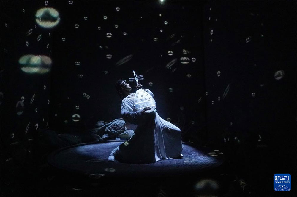 1 月 21 日,在甘肃省敦煌市,演员在大型洞窟式沉浸体验剧《乐动敦煌》中表演。