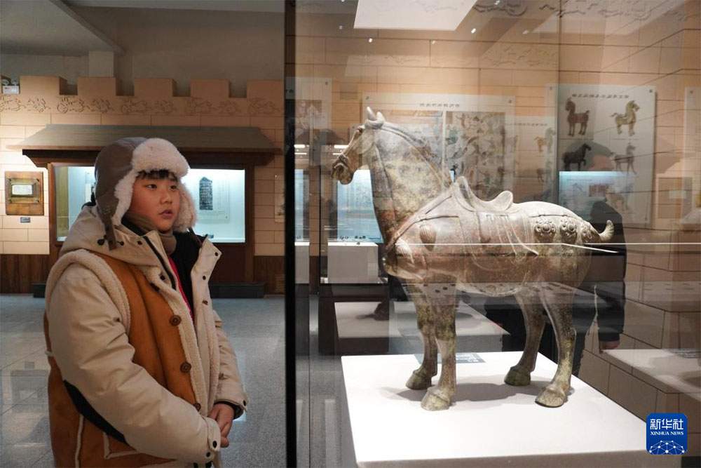 1 月 21 日,在甘肃省敦煌市,参加研学活动的学生参观阳关博物馆。