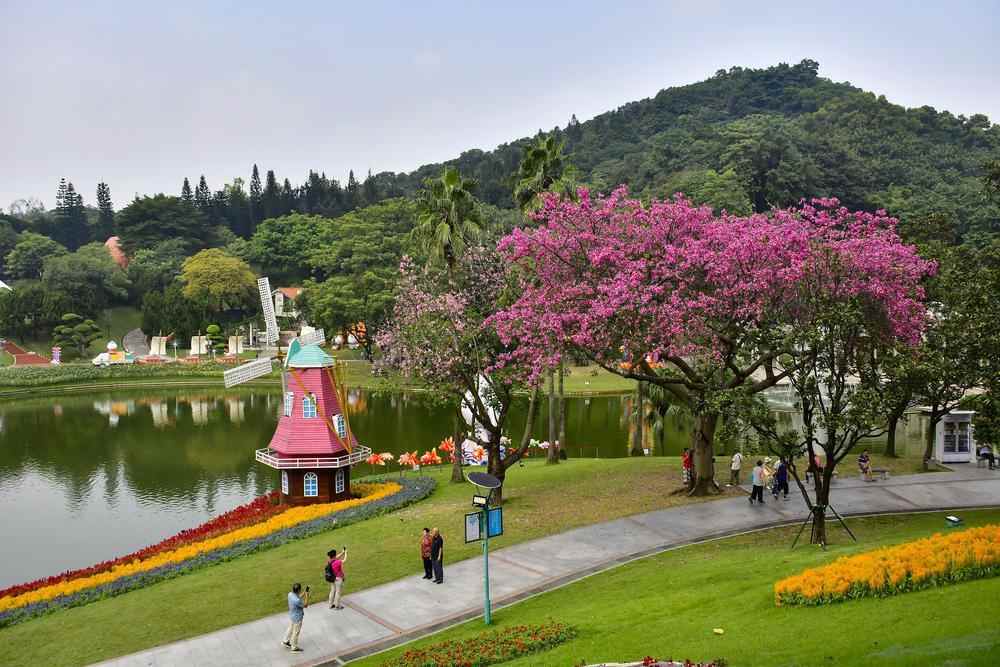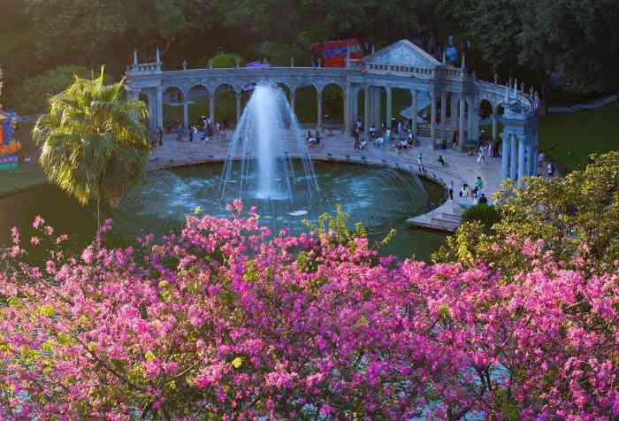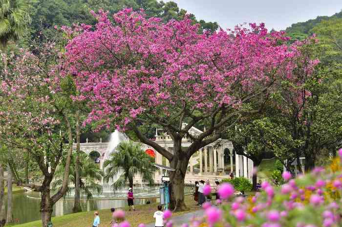 如今,异木棉或层层叠叠挤满枝头,或随风摇曳空中盘旋,或铺满草地落英不语……每一帧都是“最美”,每一树都是“赏花正当时”,静待与市民游客一同上演一场秋日的“粉色浪漫”。