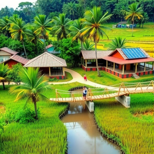 每年,在万宁市日月湾,成千上万的游客们抱着冲浪板奔向大海。而距离“冲浪胜地”日月湾仅数百米的田新村,受益于冲浪运动的发展,近年来成了网红打卡村。