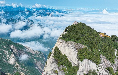 陕西渭南华山东峰云海景观美如画卷,吸引各地游客前来游览。