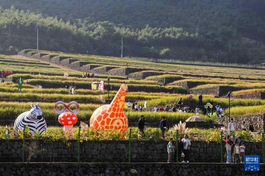 锦北街道龙马村的稻田里装扮了各种趣味景观(11 月 2 日摄)。
